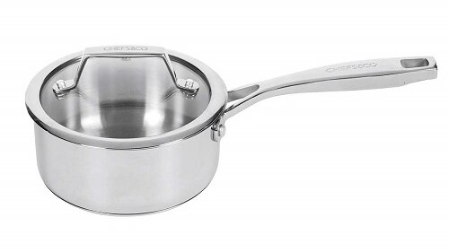 Die elegante CHEFS&CO Stielkasserolle aus hochwertigem Edelstahl verkörpert Eleganz, Widerstandsfähigkeit und Langlebigkeit. Die Mitte des Edelstahlgriffes ist hohl, wodurch er kühl bleibt und die Handhabung angenehm macht. Dank der Materialverstärkung am Ende des Griffes kann bei der Reinigung in der Spülmaschine kein Wasser eindringen und gleichzeitig lässt sich die Stielkasserolle dadurch sicher und stabil aufhängen. Der Glasdeckel mit Dampföffnung für bequemes Sichtkochen verhindert unnötigen Wärmeverlust oder ein Vakuum. Durch den dicken Boden wird die Wärme optimal gespeichert und gleichmässig auf das Kochgut verteilt.